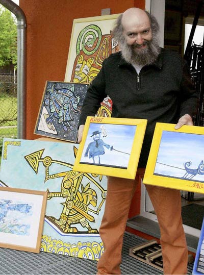 Meinhard Bärmich, Maler und Grafiker mit einer großen künstlerischen Schaffensbreite, hat seine Türen im Drachhausener Atelier ebenfalls geöffnet. Erst seit einem Jahr bietet der ziegelrote Anbau dem Vielbeschäftigten beste Bedingungen und die Besucher auf der Galerie staunen, was in der Fantasie des "Gestalters von Kunstwerken", wie er sich selber nennt, entstanden und auf Papier und Karton zu sehen ist.